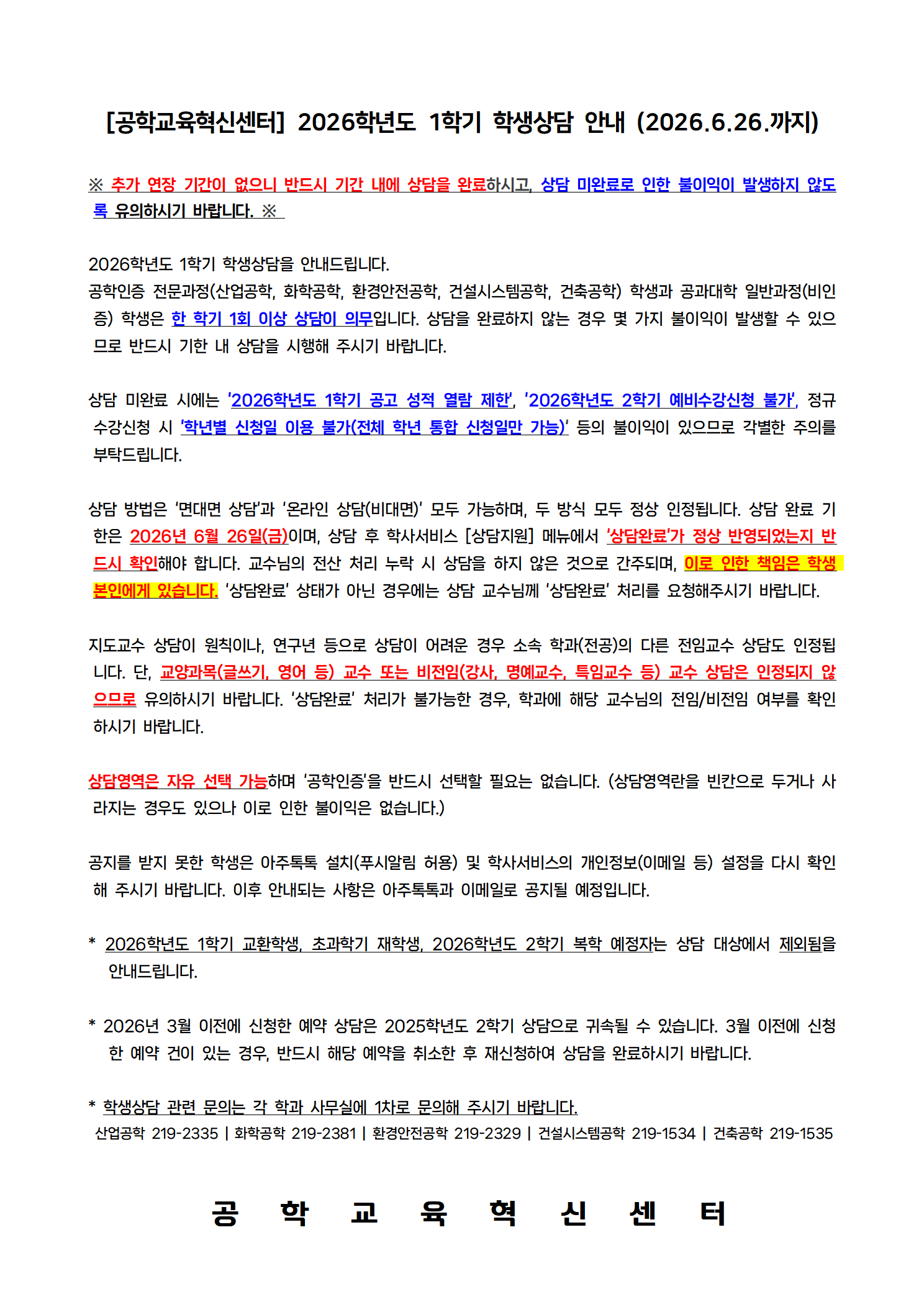 [공지] 2026학년도 1학기 학생상담 안내 (2026.06.26 까지)* 금학기 연장 없음*[공학교육혁신센터]