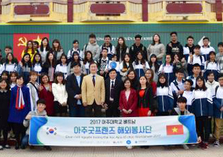 2017년도 학군단 55기 임관식이 22일 오전 9시30분 율곡관 강당에서 열렸다. 더불어 56기 승급식과 57기 입단식도 함께 진행됐다. 기수별로는 55기 37명이 임관했고, 56기 32명이 승급을 했으며 57기 28명이 새로 입단했다. 임관식에는 김동연 총장과 한기원 아주대 학군단장 및 후보생들, 김동환 아주대 ROTC동문회장 등이 참석했다. 이날 행사는 순국선열과 호국영령에 대한 묵념, 성적우수자 표창 수여, 후보생 신고, 총장과 학군단장의 훈시, ROTC 동문회장 축사 순으로 진행됐다. 수상은 대학총장상에 신우주, 학교장상에 이선규, 학군단장상에 최용석, ROTC중앙회장상에 한승옥 그리고 ROTC동문회장상에 전병국이었다. 김동연 총장은 “힘든 길을 스스로 택한 여러분들이 자랑스럽다. 각자의 리더십을 키워나가는 좋은 기회로 삼길 바란다”며 “임관, 승급, 입단을 진심으로 축하한다”고 격려했다. 한기원 학군단장도 “임관, 승급, 입단을 모두 진심으로 축하한다”며 “동료를 우선 배려하고, 인정과 의리, 사랑이 넘치는 지도자가 되도록 노력해주기를 바란다”고 말했다.