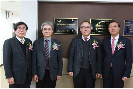 본교와 국민대학교, 단국대학교, 서울과학기술대학교 4개 대학이 공동 출자하여 설립한 기술지주회사인㈜엔포유대학연합기술지주회사(이하 ㈜엔포유기술지주)의 현판식이 12월 7일 종합관 11층에서 개최되었다. ㈜엔포유기술지주는 2016년 7월 교육부의 인가를 받아 설립된 46호 기술지주회사로 현재까지 BT분야 3개, BT/IT융합분야 1개, IT분야 1개, 인문사회분야 1개의 자회사를 연구개발특구법에 따른 연구소기업으로 설립하였다.특히 1호 자회사 나인비는 2016년 8월 회사설립 후 현재까지 8억원 이상의 정부연구개발비를 수주하는 등 사업화 성공에 대한 기대가 매우 크며, 다른 자회사 또한 지주회사와 협력하여 기술사업화를 위해 필요한 연구비를 확보하기 위한 준비를 차질 없이 진행하고 있다. 당일 6개 자회사에 대한 연구소기업 등록증 수여식 및 지주회사 이사회도 함께 진행되었다. ㈜엔포유기술지주는 참여 대학 내 창업기회를 지속적으로 발굴하여 2017년 상반기까지 5개 이상의 자회사를 추가로 설립할 계획이고, 미국에 진출하는 자회사를 통한 투자금 조기 회수 방안도 계획하고 있으며, 신규 설립한 자회사에 대해서는 미래부, 산업부, 교육부의 지원프로그램을 이용한 창업성장지원을 또한 계획하고 있다. 한편, ㈜엔포유기술지주의 대표이사인 최경희 산학부총장은 내실있는 지주회사 경영 및 적시의 자회사 지원을 참여대학 및 자회사 대표에게 약속하였으며, 대학 내 창업지원에 대한 적극적인 의지를 밝혔다. 최경희 아주대 산학부총장, 박성완 단국대 산학협력단장>