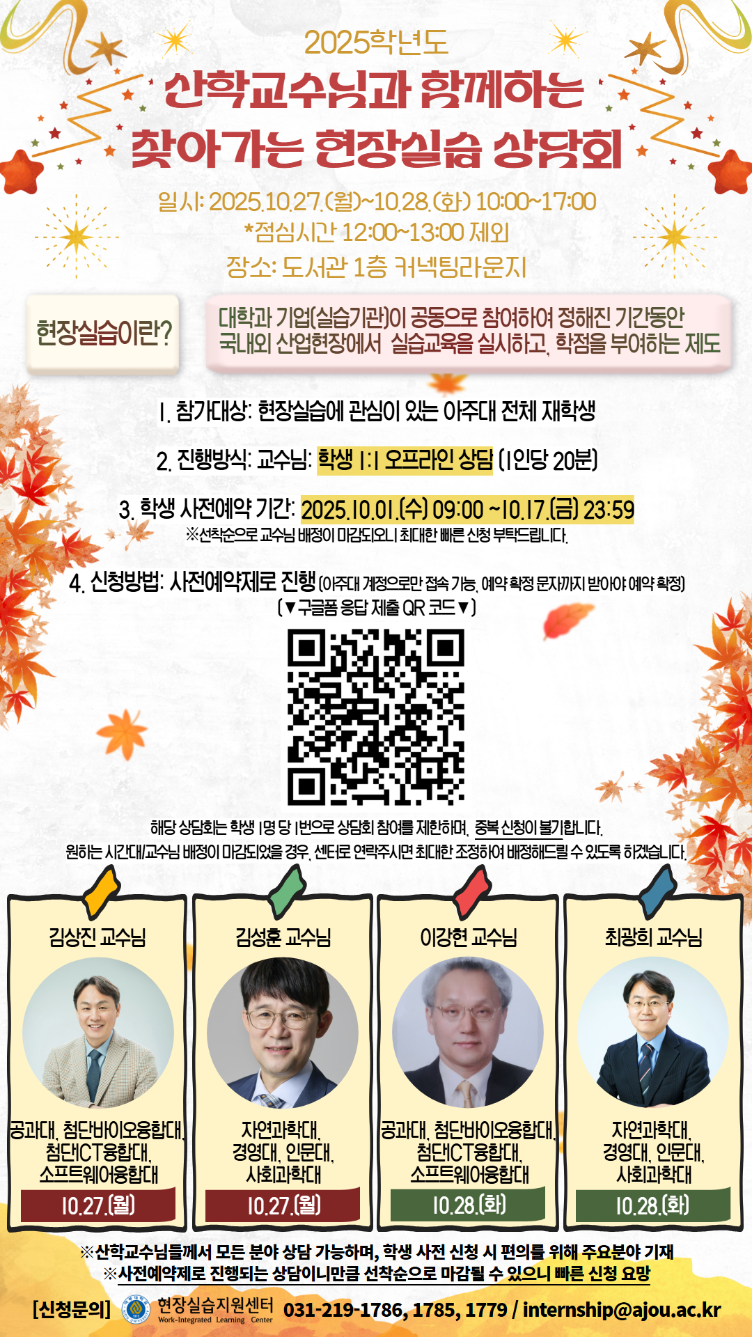 [RISE] 2025 산학교수님과 함께하는 "찾아가는 현장실습 상담회" 사전예약 안내 (★10.01.(수) 09:00~ )