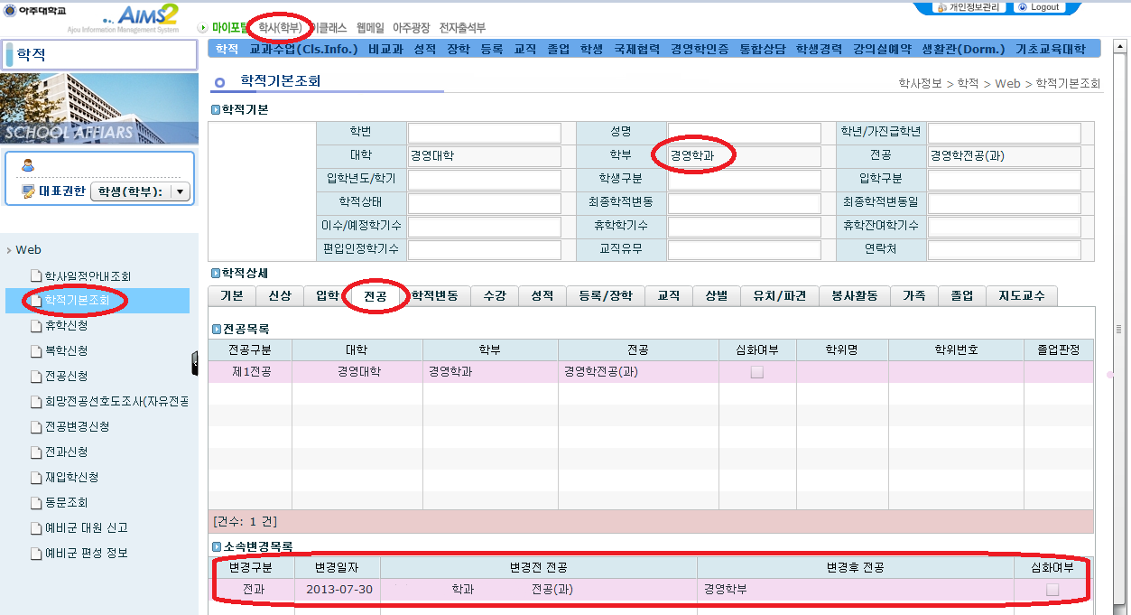 [학부] 2016-1학기 전과 확정 알림 및 학사안내