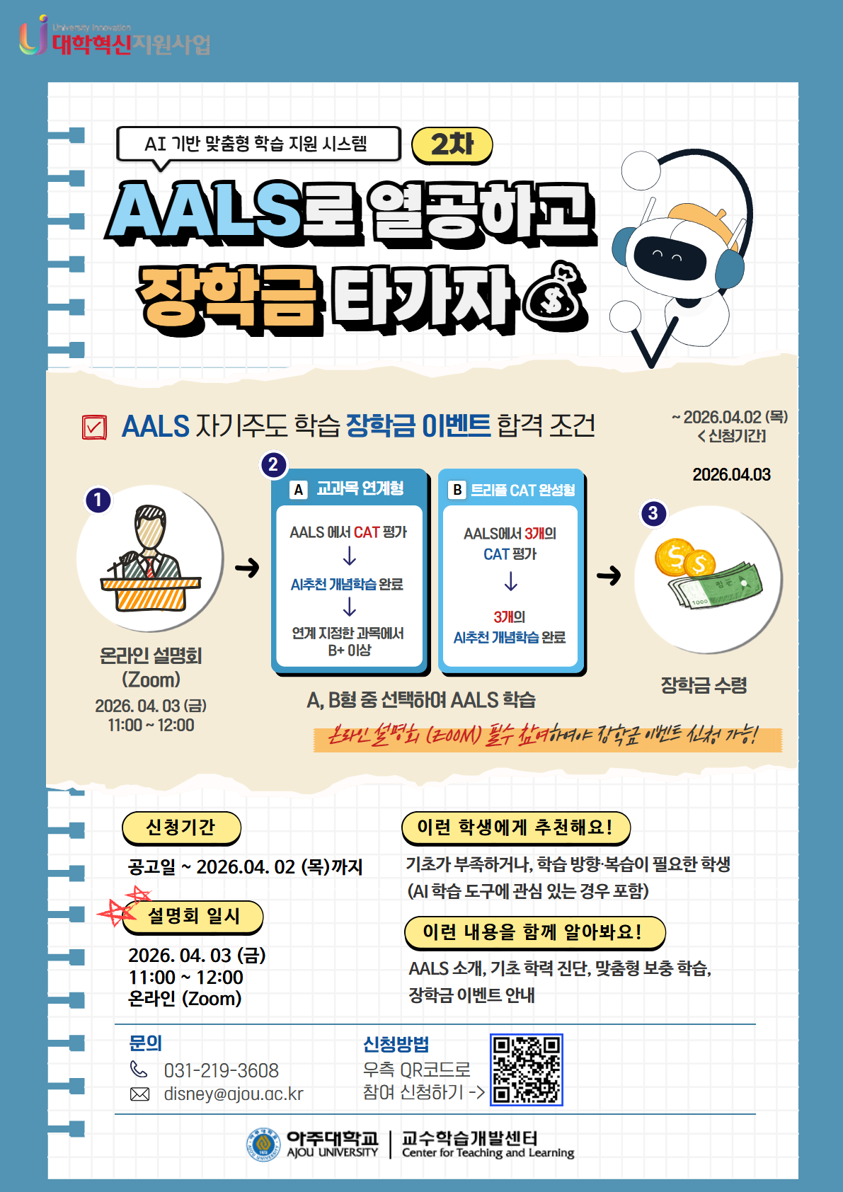[비교과] (재공지)[재학생/온라인]AALS 자기주도 학습 이벤트 신청(2차)