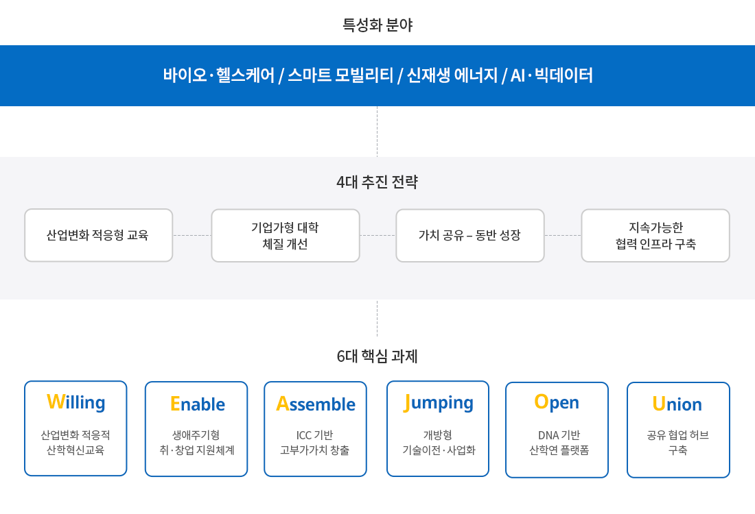 - 학과 경계가 없는 융합교육 생태계 구축