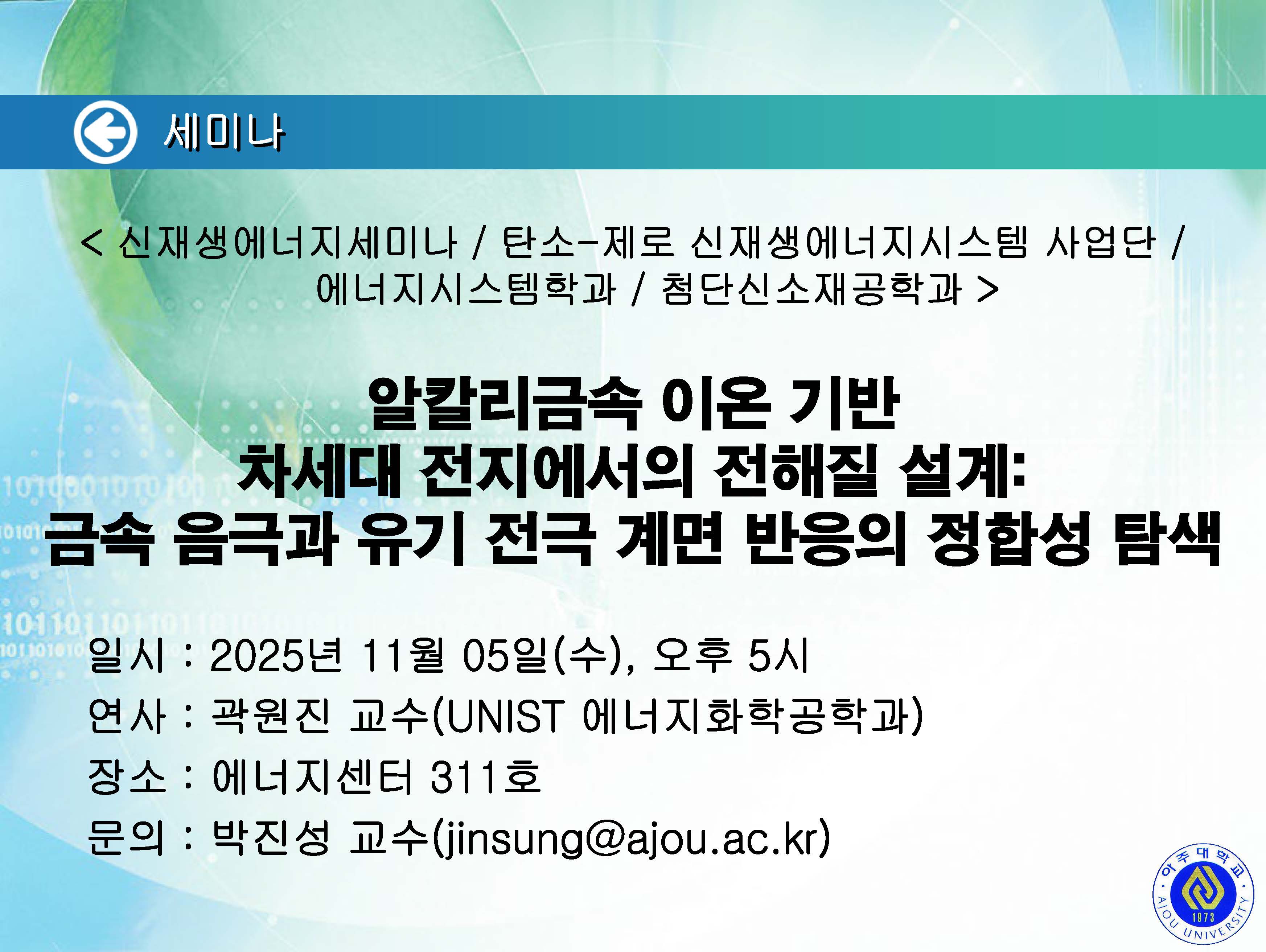 2025 Ajou Bio-Health Science Research Week: Emerging Faculty Forum (11/10 13:30)