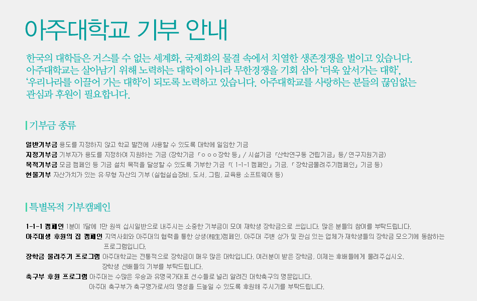 ¾ÆÁÖ´ëÇб³ ÁÖ¿ä ¼Ò½Ä ±³¼ö ¹× ¿¬±¸ ¼Ò½Ä ¾ÆÁÖ´ëÇб³ ±âºÎ ¼Ò½Ä ¾ÆÁÖ´ëÇб³ ±âºÎ ¾È³» ±âºÎÀÚ ¸í´Ü